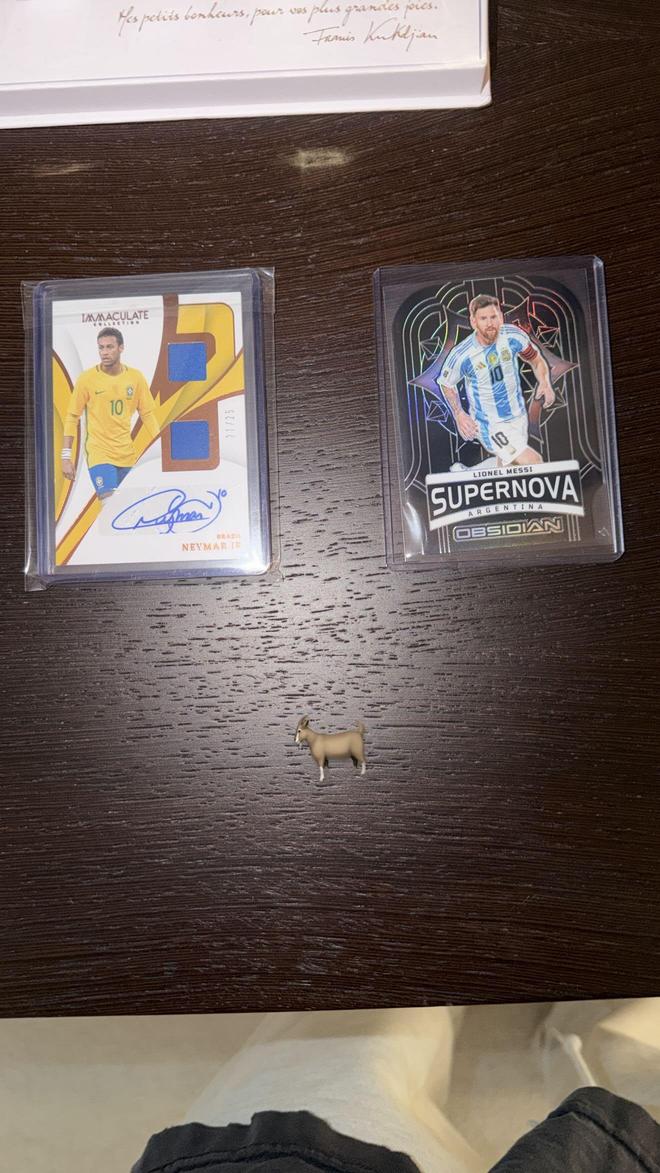 埃利奥特晒内马尔与梅西的球星卡,并配上了GOAT的emoji