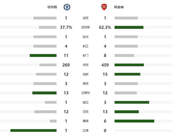第71分钟萨卡大禁区外突然起脚远射,没有压住直接放了高射炮,比赛最后时刻,阿森纳正面轰门被桑切斯倒地化解,替补登场的约克雷斯补射偏慢,没有碰到皮球,还撞到了蓝军门将,被主裁判出示黄牌警告,最终经历90分钟的鏖战,两支球队1-1握手言和,各自获得了一个联赛积分。